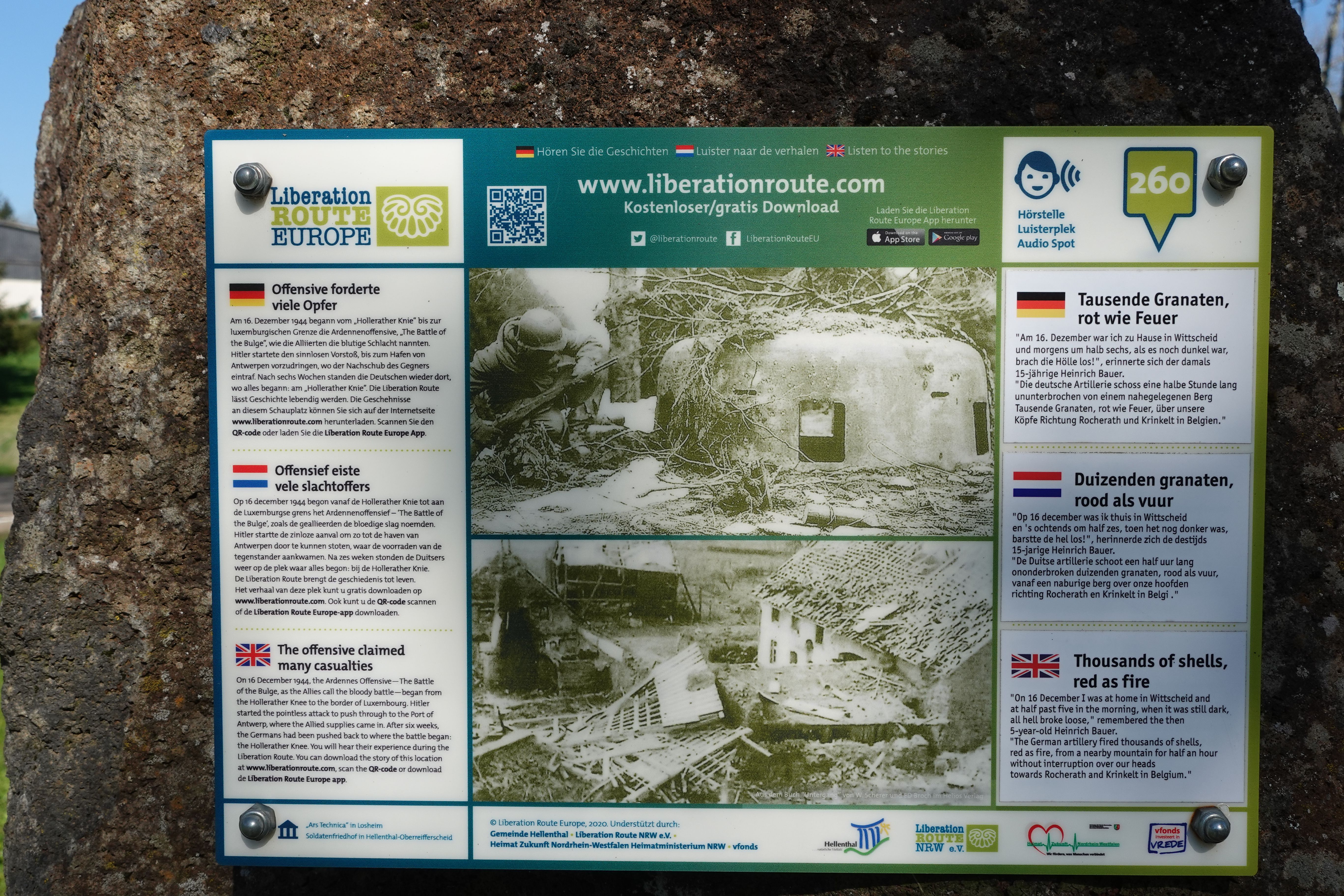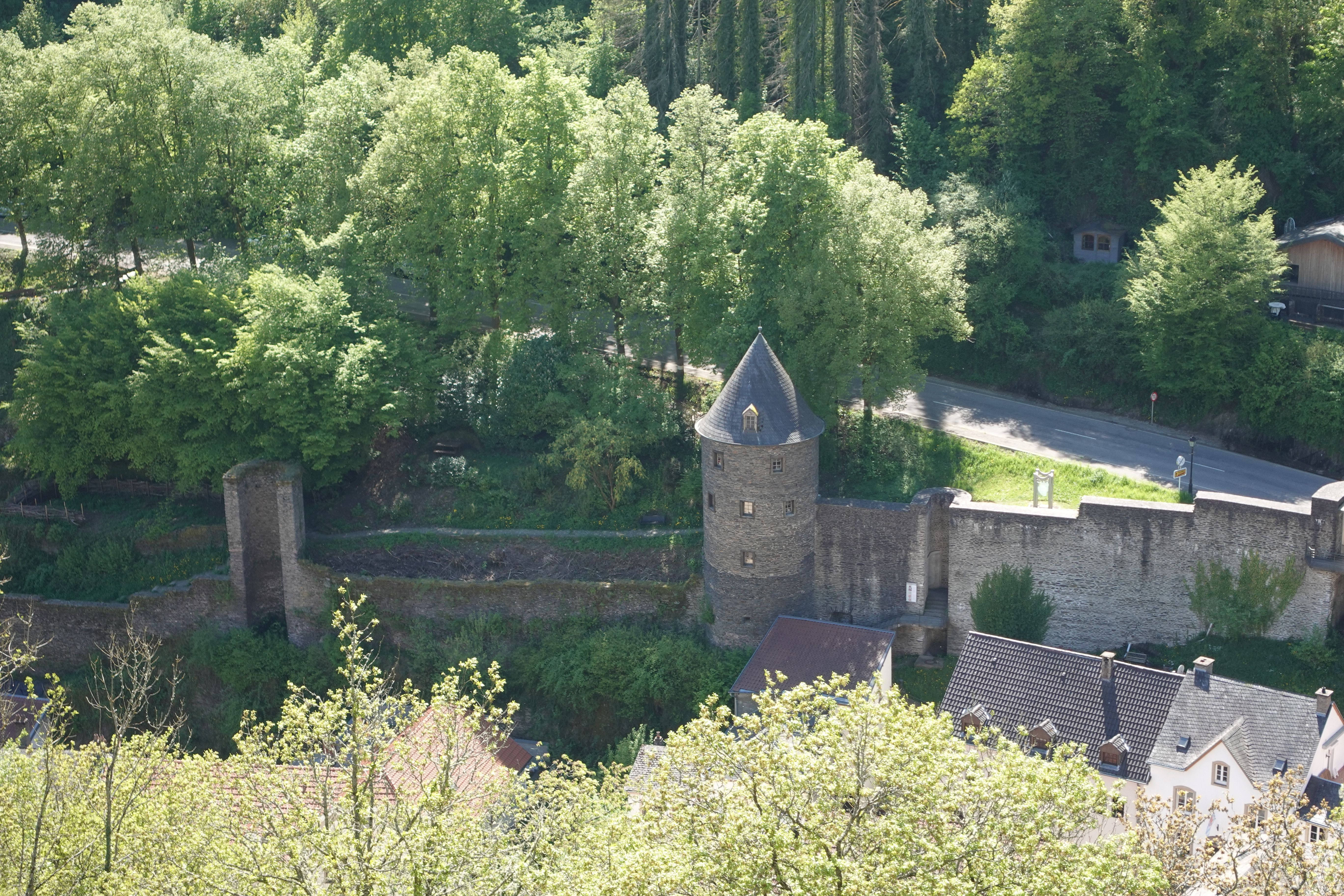 It was bombed in WWI by the Germans, and again in WWII when it was on the front lines for both the Battle of the Ardennes in 1940 and the Bulge in 1944.