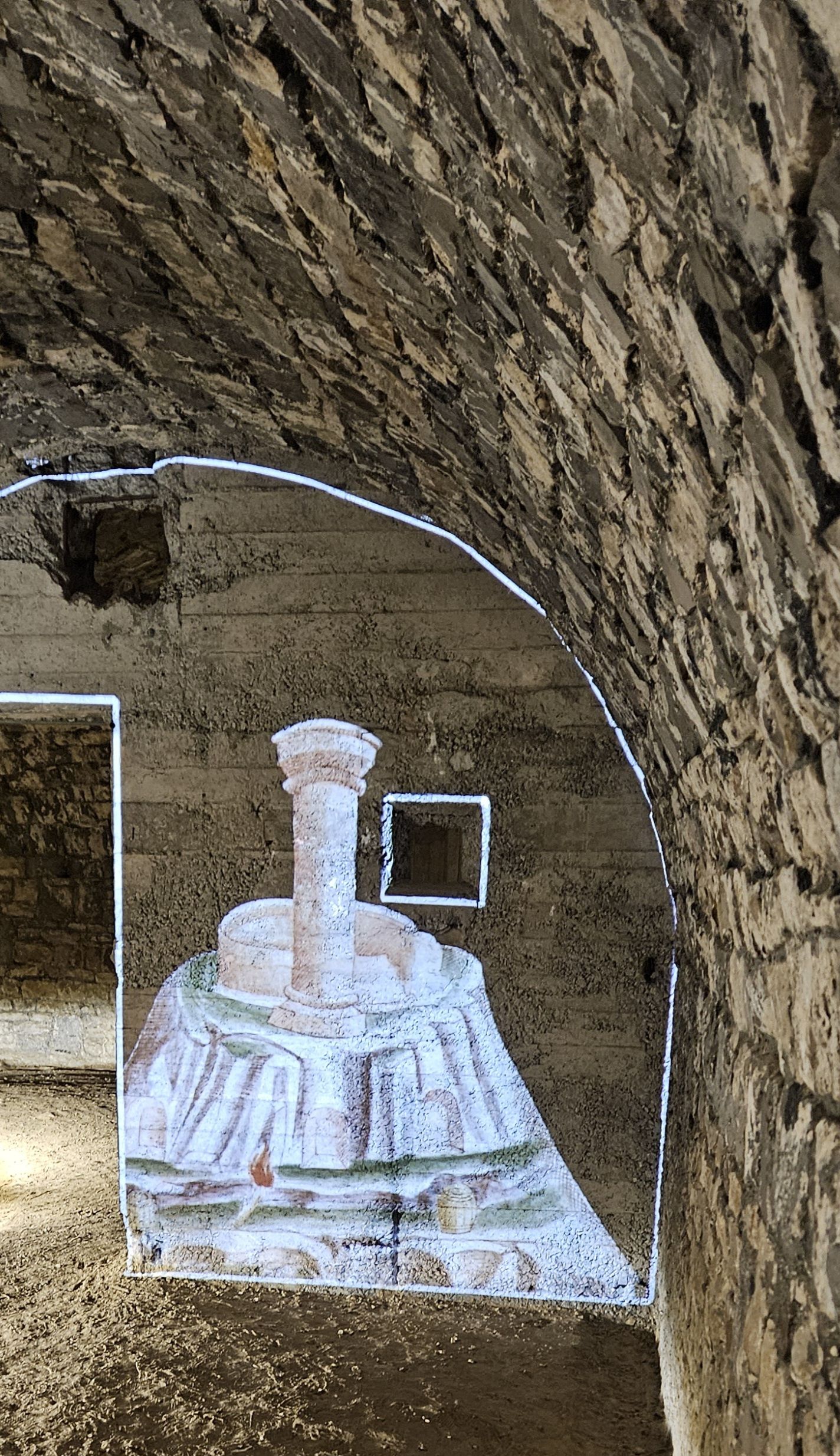 Inside. This was where Quicklime was kept. It was used in case of poison gas