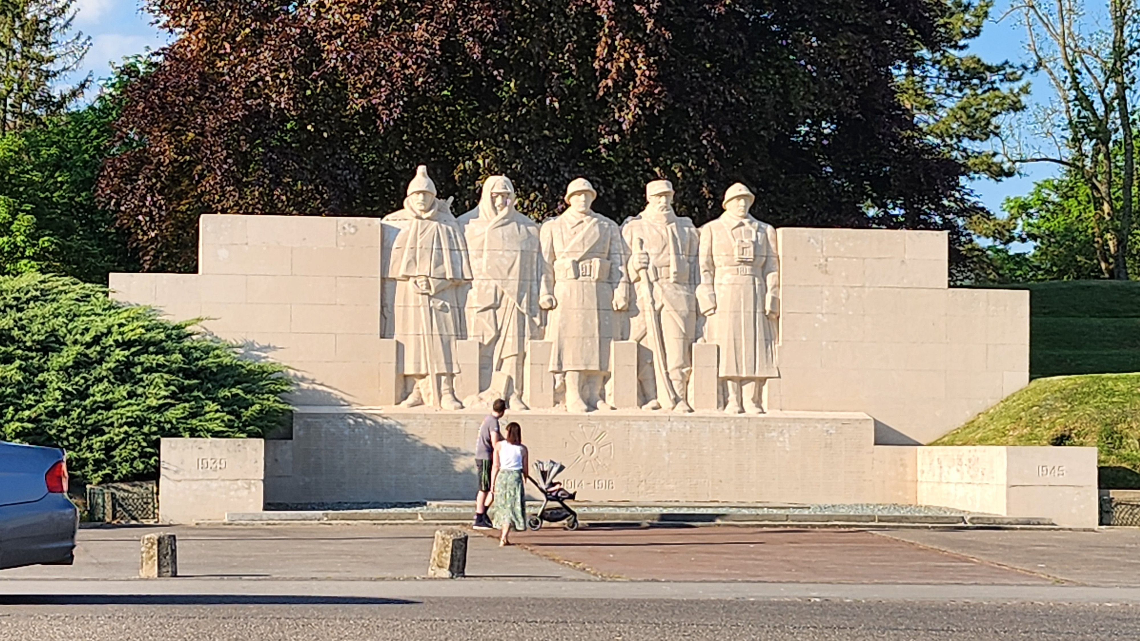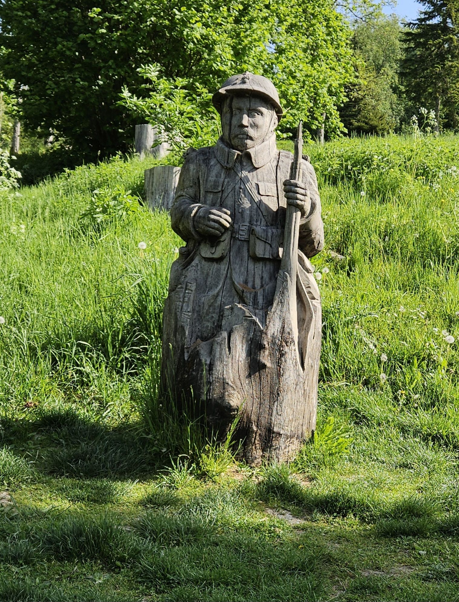 This carved soldier marks the crater where the remains of 26 French soldiers were found in 2013