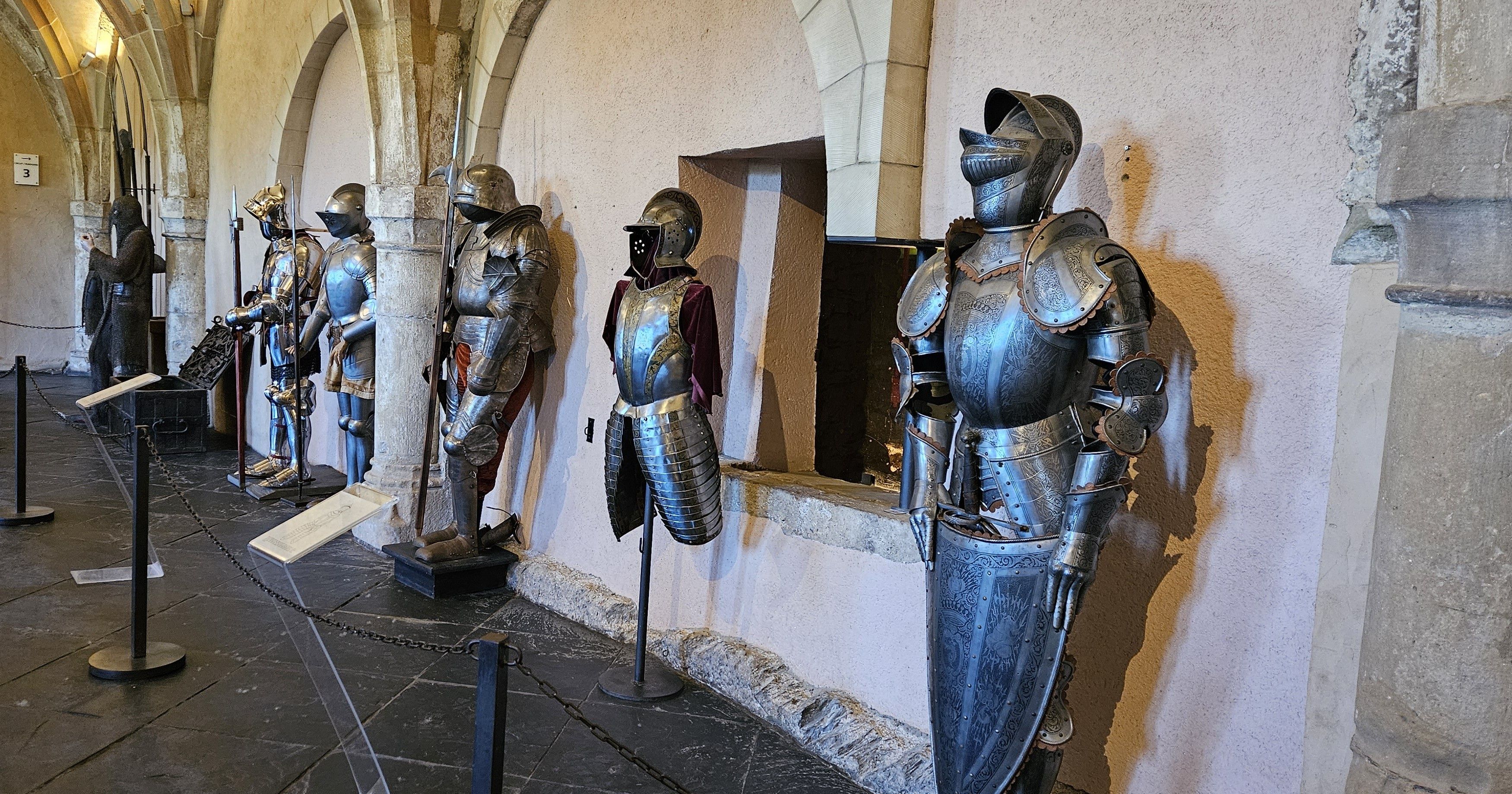 A nice display of the helmets from the centuries of armies that have been here