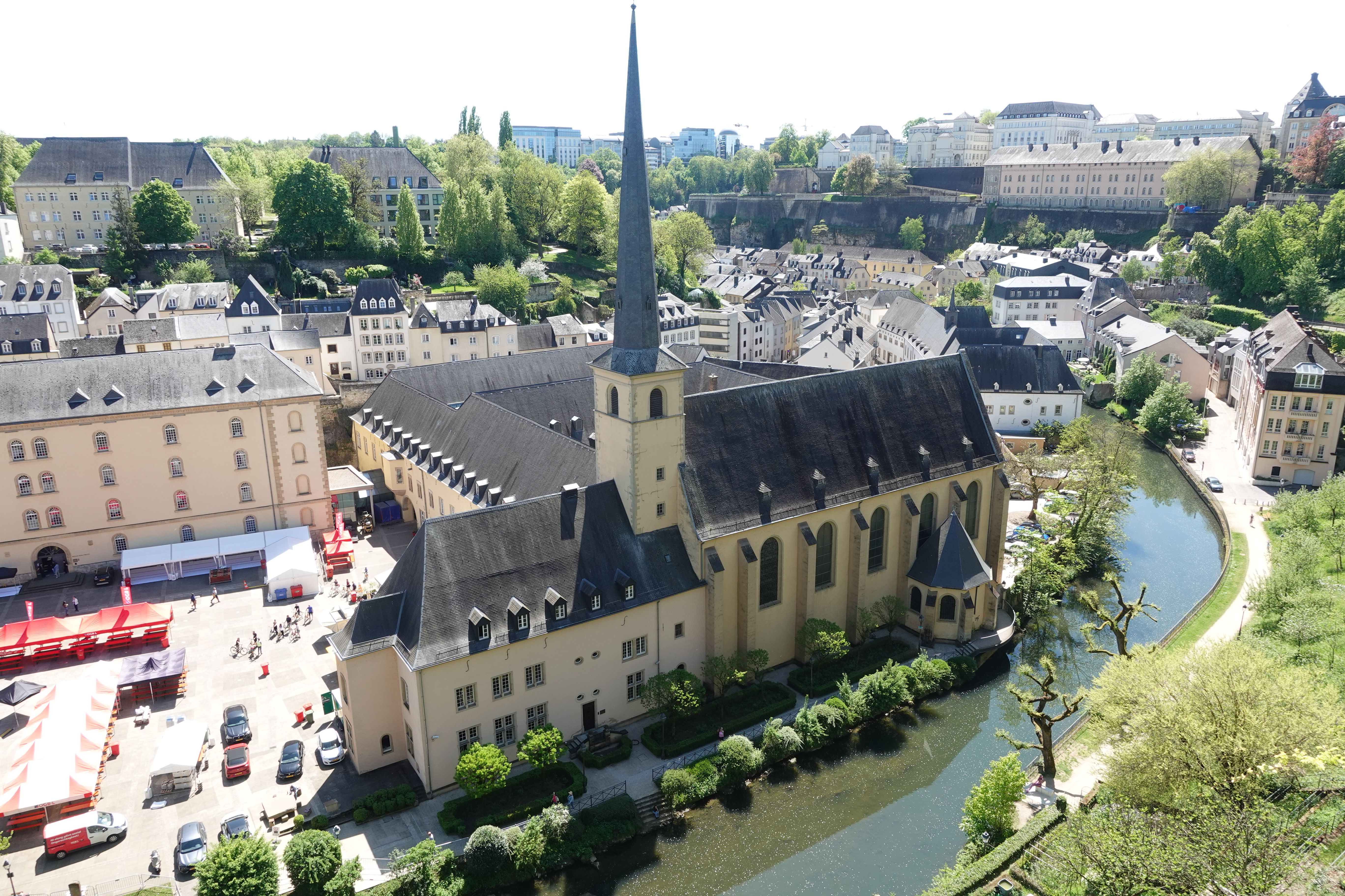 This is a lovely Premonstratensian (not monks but canons regular, also known as the Order of Canons Regular of Prémontré, Norbertines, or White Canons) abbey founded in 1143. It sits atop a hill that overlooks the city.